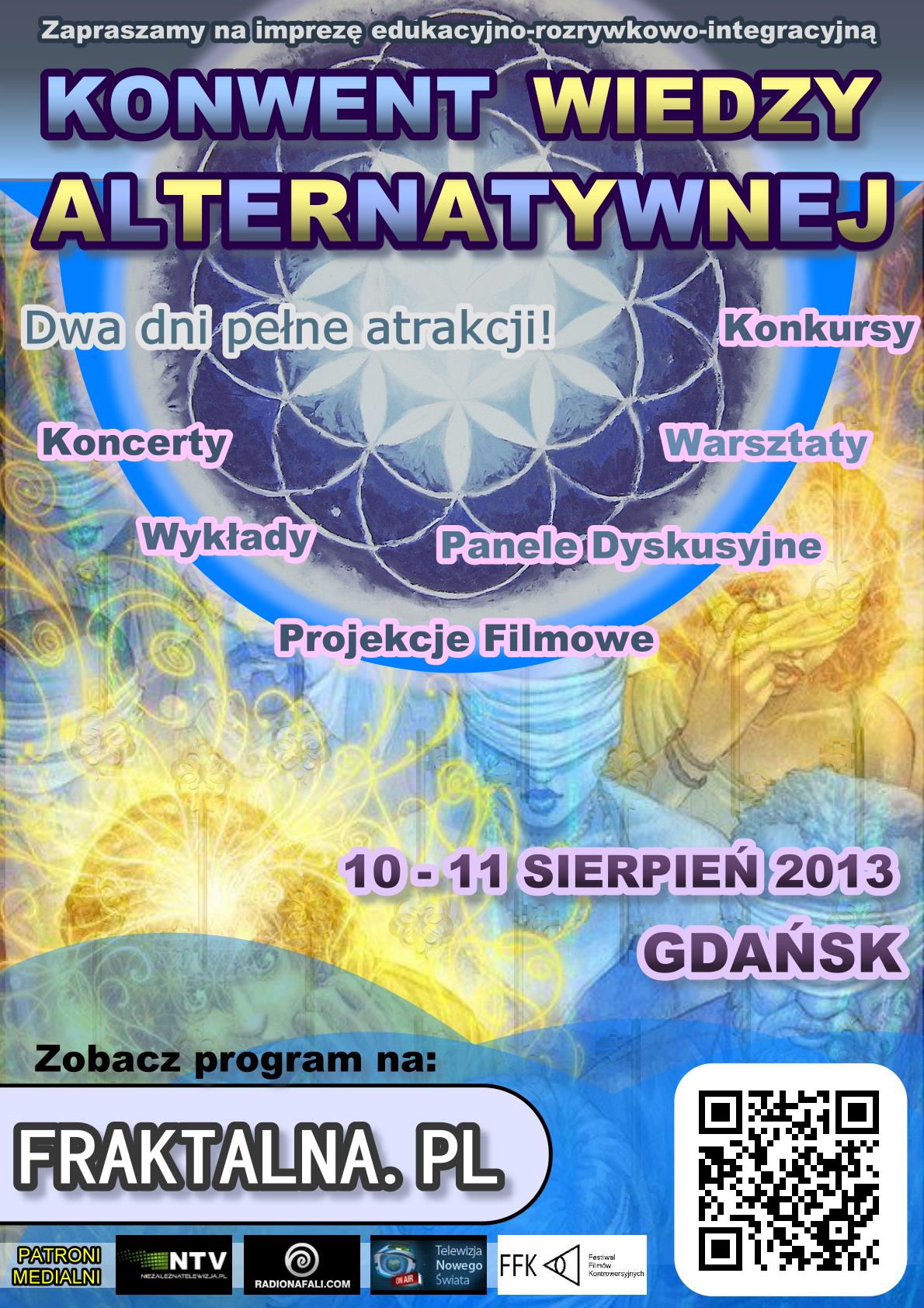 UWAGA! To jest strona archiwalna pierwszej edycji Konwentu Wiedzy Alternatywnej, który odbył się dnia 10-11 sierpnia 2013 w Gdańsku. Zawarte na tej stronie informacje są nieaktualne, aby przejąć do aktualnej strony kliknij tutaj. |
